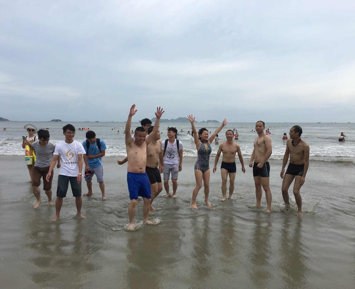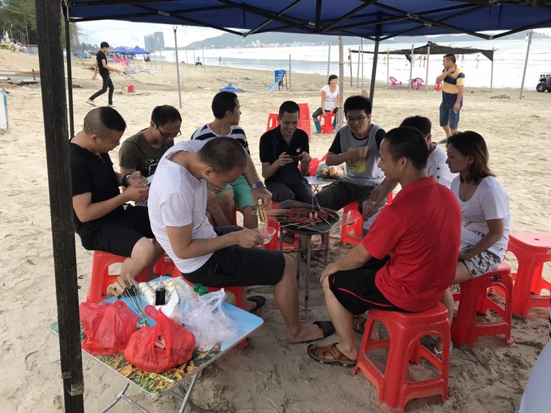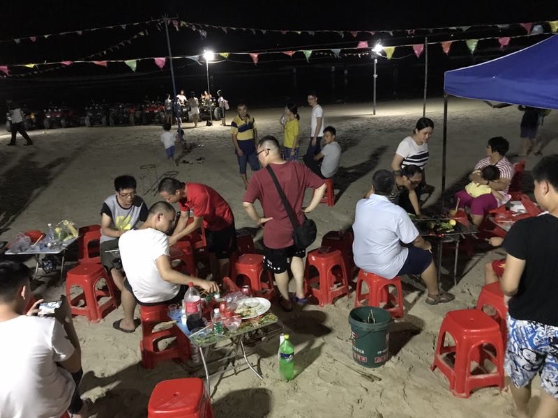 2017年7月8-9日,公司22人参加了本次惠州双月湾户外旅行,为了参加此次户外活动,同事带上了自己的家人包括他们可爱的女儿,深圳的同事更是不远千里来到广州和我们一起出发,经过4个小时的车程后,大家迫不及待换好比基尼沙滩裤冲上海滩,在海中嬉笑打闹,投入大海的怀抱。傍晚时分,大家洗漱完后聚集在民宿准备BBQ以及餐前拓展游戏,可能由于体质原因,输的永远是其中一队。游戏之后是夜间海滩烧烤,除了海风的吹洗、海边KTV,旁边更是有烟火炮竹。就这样愉快得过完了旅行的第一天,第二天一些小伙伴趁着天还未亮,跑去欣赏即将破晓的海上日出。观赏完日出后,急忙准备我们的第二站:2.5公里徒步双月湾光景台,在观景台上将惠州双月湾全景一览无余,可谓壮观。光景台后又来到海龟博物馆,途中经过海龟产卵地,深深记得那片碧海蓝天:一片未曾被污染过的海滩。就这样,以这片碧海结束我们的2天一夜惠州双月湾之旅。期待下一次的旅程!